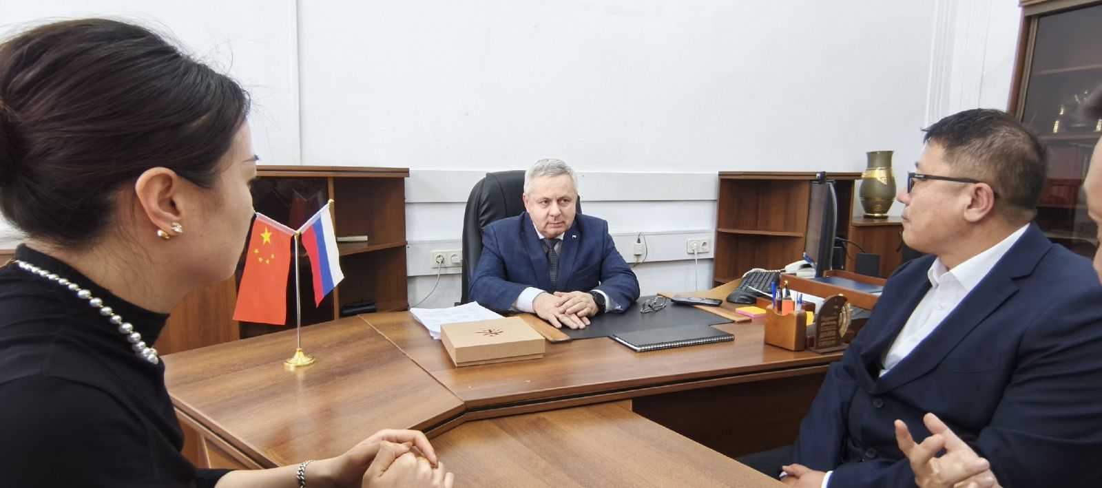 Делегация встретилась с исполняющим обязанности директора ЧИ БГУ Николаем Раевским. Стороны обсудили результаты реализации совместных программ и перспективы трёхстороннего сотрудничества.