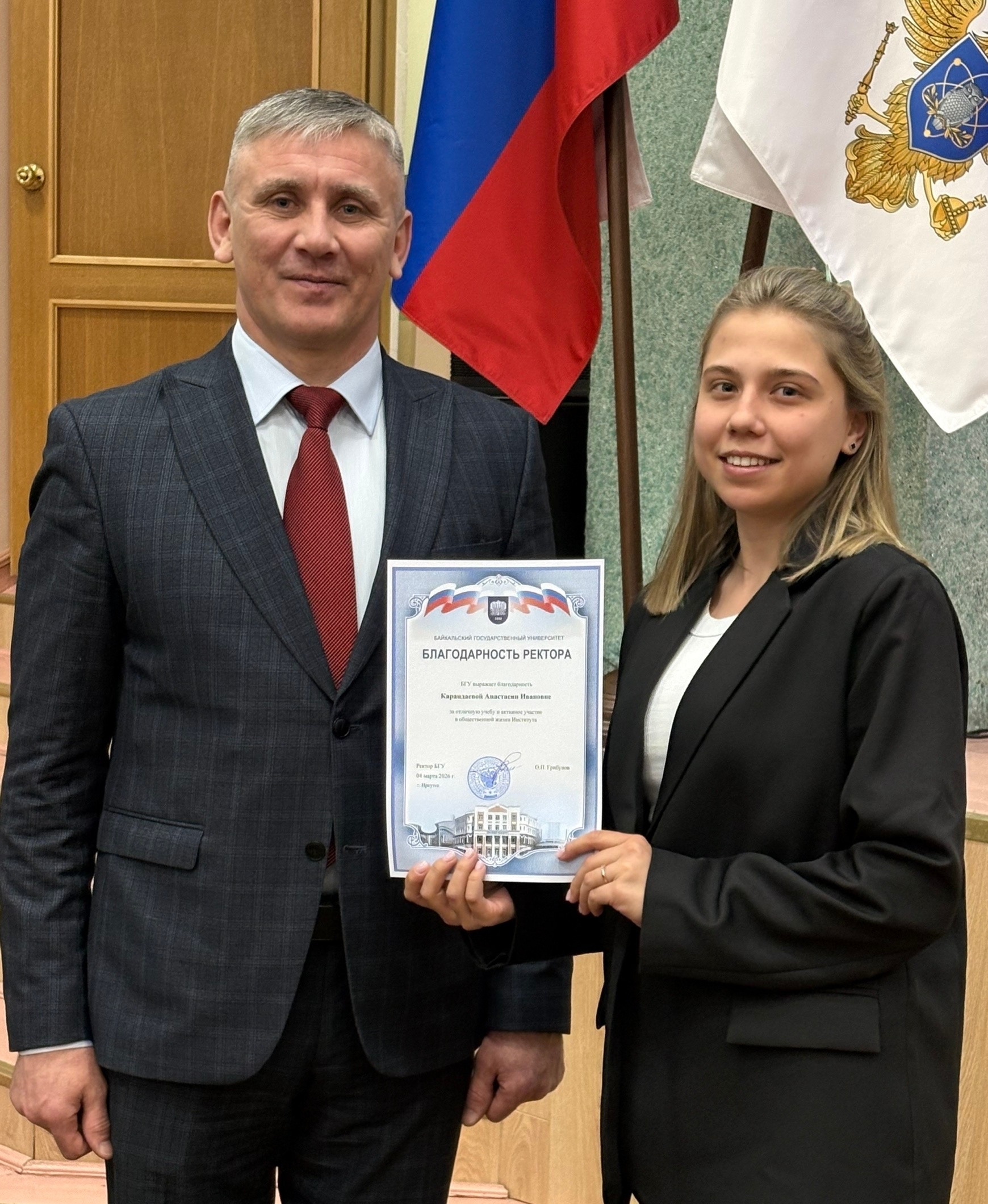 Ректор Байкальского университета профессор О.П. Грибунов посетил 5 марта Читинский институт, приурочив поездку к дате торжественного вручения дипломов выпускникам Колледжа ЧИ БГУ заочной формы обучения. Кроме вручения дипломов, ректор провел деловую встречу с Советом ЧИ БГУ, с коллективом сотрудников и преподавателей, встретился со студенческим активом института.